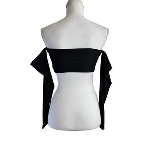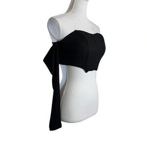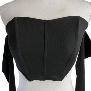 Windsor Black Crop Top Size Small Cold Shoulder Sleeves Corset Boning Pointed