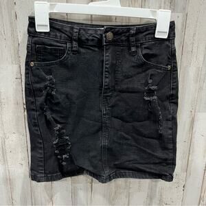 Windsor Black Denim Distressed Mini Skirt Stretchy Womens Size Small