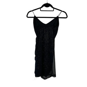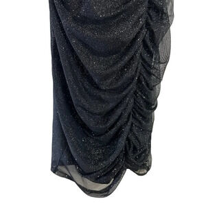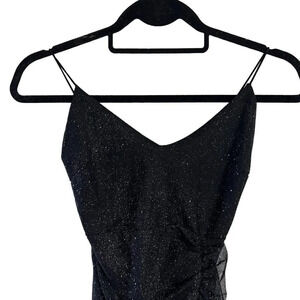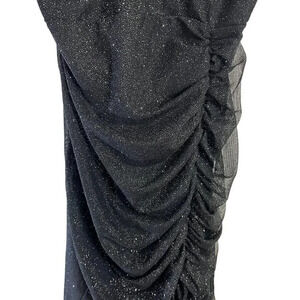 Windsor Black Glitter Bodycon Mini Dress Medium Gathered V Neck Spaghetti Straps