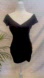 Like new, never worn. Black mini dress with wrap style skirt and ruching over stomach. Off-shoulder design with black glitter. Size women’s large.