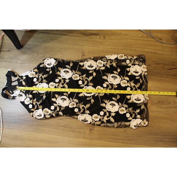 Windsor Black Gold Floral Embroidered Open-Back Halter Mini Dress | Women Small