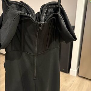 Elegant black maxi dress. Off-shoulder design. Perfect for formal occasions.
