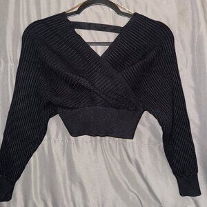 Windsor Black Ribbed Knit Surplice Plunge Tie Waist Sweater Crop Small. Condition is Pre-owned - Excellent. Shipped with UPS Ground.