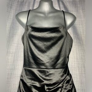 This elegant black satin dress is perfect for any formal occasion. Its sleek design and luxurious fabric offer a sophisticated look.