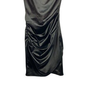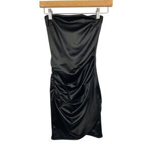 This elegant strapless dress exudes sophistication with its ruched design, accentuating the body's natural curves. Crafted from a blend of polyester and spandex, it offers both comfort and style. Its black satin finish provides a timeless look, ideal for upscale events. Consider this dress to elevate your wardrobe effortlessly.