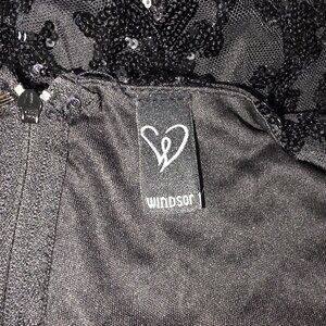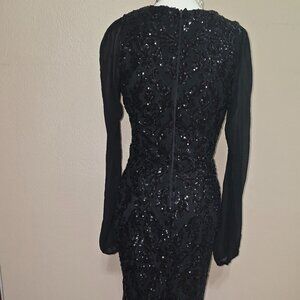 Windsor Black Sequin Long Sleeve Mesh Evening Gown – S
