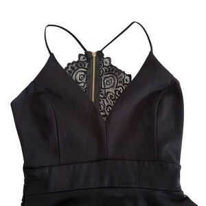 Windsor New with tags. Holiday little black dress is perfect for a cocktail night out, or any formal night out featuring a striking back design with lace cutout. The spaghetti straps and fitted waist add a delicate touch, making it a stylish choice for any evening occasion. Zip back with lace. Skater skirt design. Double skirt. Color: Black. Size Small. 65% Rayon, 30% Nylon, 5% Spandex. Made in USA. NWT. Black is extremely hard to photograph. There are no stains or signs of fading. The photos are showing discoloration that are not there.