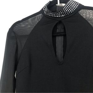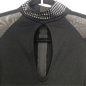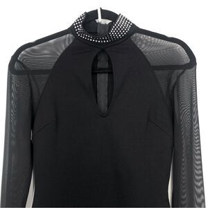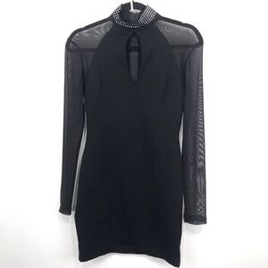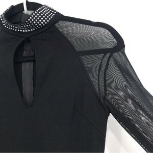 Windsor Black Sparkle Collar Sexy Semi Sheer Long Sleeve BodyCon Mini Party Dress