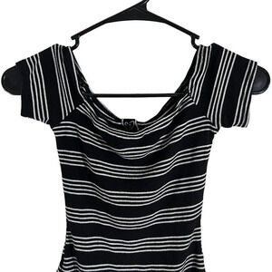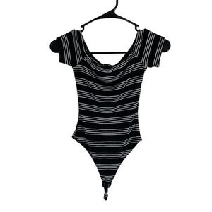 Windsor Black and White Striped Bodysuit Size XS Short Sleeve Stretch Knit