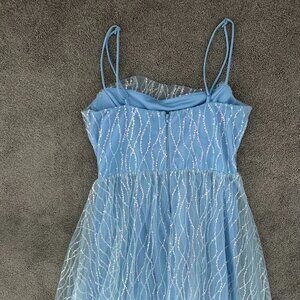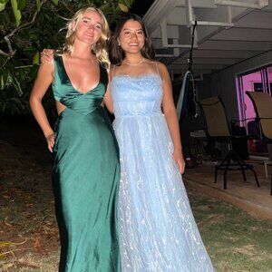 Set hearts aflutter in the Amiyah formal sequin tulle long dress this prom season or for upscale birthdays! Adorned with a stunning sequin-embellished pattern on delicate tulle fabric, she features a tulle cowl neckline, adjustable spaghetti straps, and a flexible boning corset bodice to accentuate your figure. The A-line silhouette and floor-length bonded hem add a touch of sophistication to your night. Complete the look with a gorgeous necklace and earrings set!