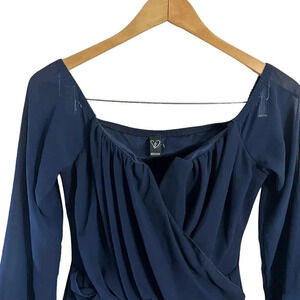 Windsor Blue Dress Size Medium Pointed V Neck Draped Chiffon Cocktail Formal