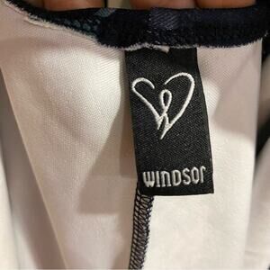 Medium blue, cream and pink sleeveless mini dress by Windsor in excellent preowned condition.
