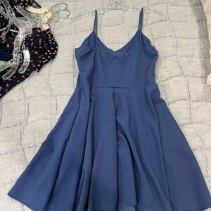 Windsor Blue Pleated Midi Dress Spaghetti Strap A-line