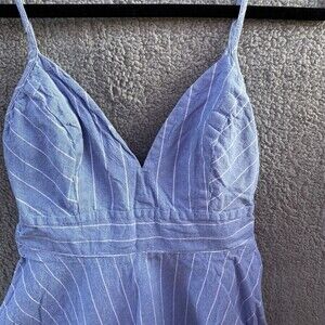 Windsor Blue Striped Summer Tie Spaghetti Strap Dress Sz Small