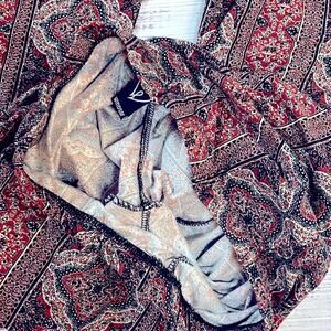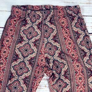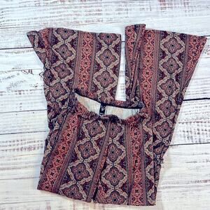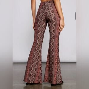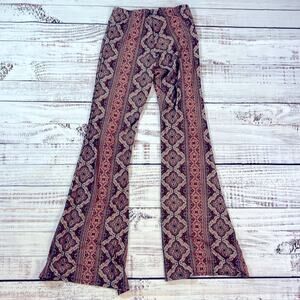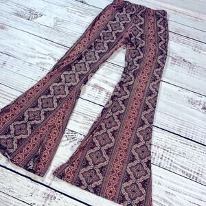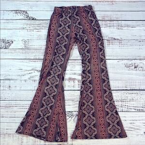 Embrace a bohemian vibe with these stylish multicolor flare pants. Get ready for the fesrtival season in these boho flare pants featuring a high-rise elasticised waist, form-fitting silhouette, with plenty of stretch. Perfect for any casual outing. Complete the look in a chic panama hat. Good Preloved Condition.