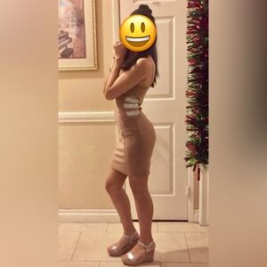 Windsor Brand - Tan Mini Dress with Silver Side Cutouts