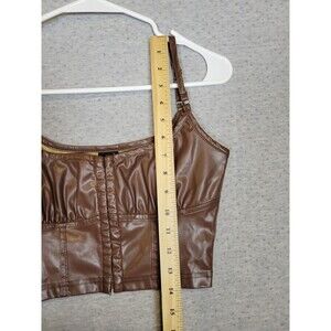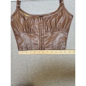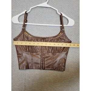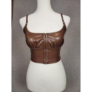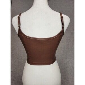 Windsor Brown Faux Leather Cropped Corset Junior Small Hook Front Strap Sleeve