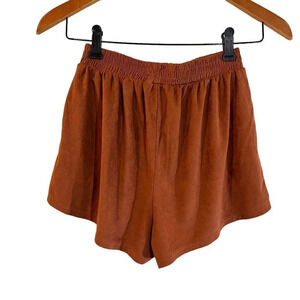 Windsor Burnt Orange Shorts Size Small Elastic Waistband Pockets Faux Suede
