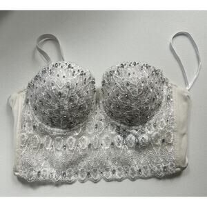Windsor Bustier Bra Womens Rhinestone White Medium Crop