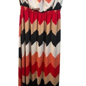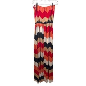 Windsor Chevron Strapless Maxi Dress Size Large Red Tan Black Boho Summer Y2K