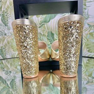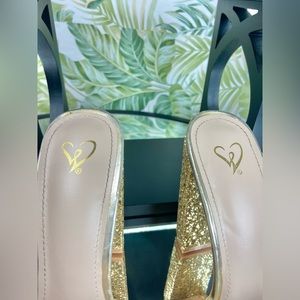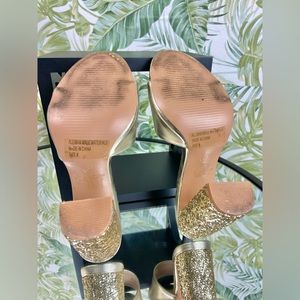 Windsor Chromatic Magic Glitter Block Mules Gold Glitter Party Heels Size 8
