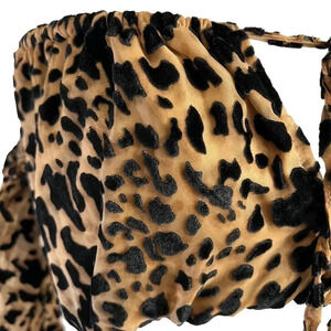 Windsor Cold Shoulder Cropped Blouse Small Leopard Print Velour Textured Keyhole