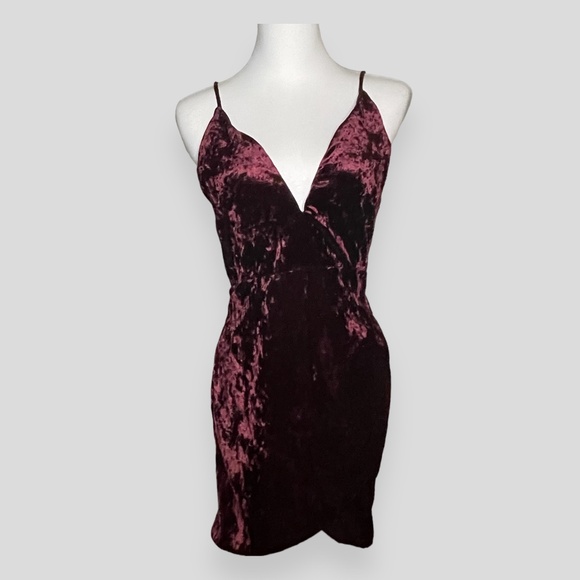 Windsor Crushed Velvet Deep Burgundy Mini Dress Size Small