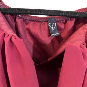 Windsor Dark Red Blouse Size Small Pointed V Neck Chiffon Cropped Long Sleeves