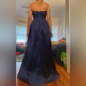 Chic deep blue sweetheart neckline strapless gown.