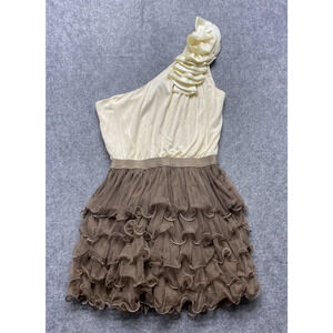 Windsor Dress Womens Large Cream Brown One Shoulder Ruffle Tulle Party Y2K