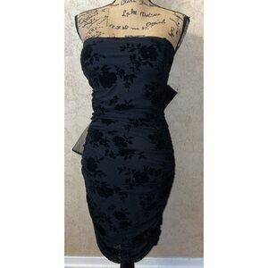 Windsor Flocked Velvet Black Back Bow Strapless Dress