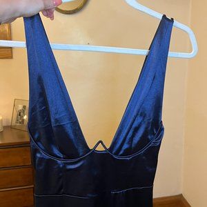 No size tag but fits me and i am normally a size 6. Possibly an older/vintage windsor dress. I can't seem to find it anywhere online. Does have a leg slit. Would be great for prom or homecoming