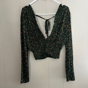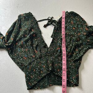 Windsor Floral Smocked Long Sleeve Crop Top | Deep V-Neck Open Back Tie | Size M