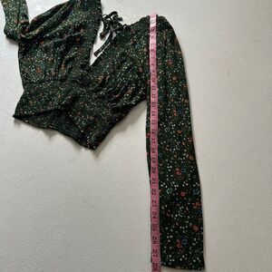 Windsor floral long sleeve crop top in a deep forest green with dainty multicolor floral print.