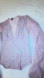 Chic mauve blouse with glitter accents. Sheer fabric and deep V-neck. Long puff sleeves add elegance.