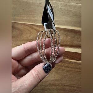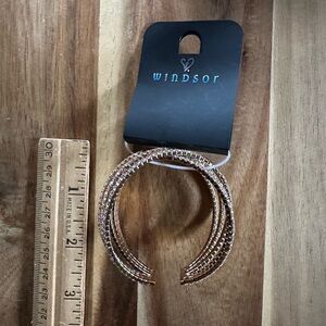 Chic gold cuff with six rows of shimmering rhinestones. Ideal for adding sparkle. Rhinestone memory wire cuff bracelet brand new from Windsor with tags from a smoke-free home.