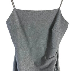 Windsor Gray Silver Metallic Bodycon Dress Medium Spaghetti Straps Ruched Side