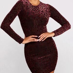 Windsor Heart Of Glam Bodycon Dress XS-SM Velvet Heart Mini Burgundy Long Sleeve