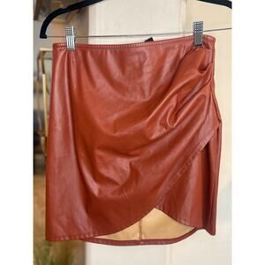 Windsor High Waist Pleat Brown Faux Leather Mini Skirt Junior M