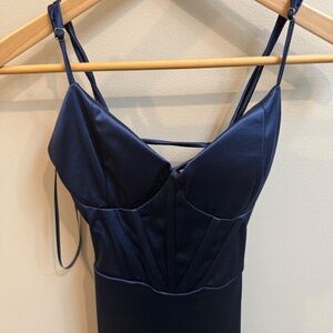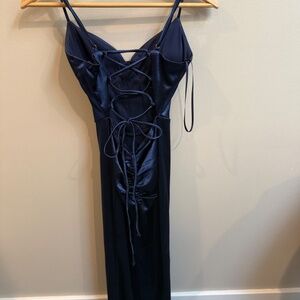 Dark blue Windsor formal dress with fitted bodice and lace up back. Never worn.