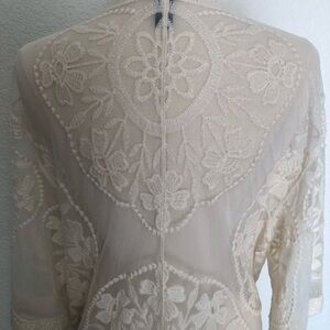 Elegant Ivory Sheer Windsor Lacey Embroidered Robe. Size Large but easily fits a medium. In excellent new condition without tags. This would make a lovely gift. So pretty. Measurements in photos.