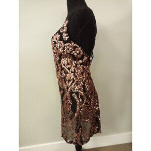 • Windor Junior's Black and Rose Gold Sequin Formal Dress Measurement Lying Flat Pit 2 Pit 15 in Dress Length 33.5 IN RN 54314