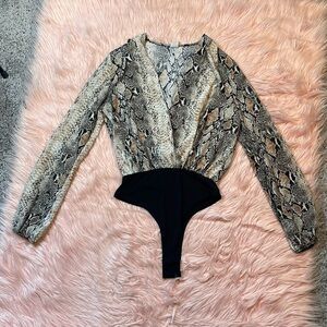 Windsor Keep It Wild Snakeskin Low Cut Woman’s Long Sleeve Bodysuit Size Medium