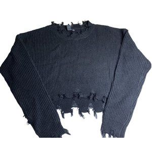 Windsor Knit Crop Black Sweater Fringe Sleeve Top Size Medium Boho.