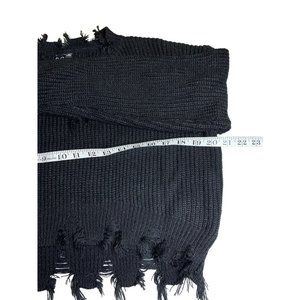 Windsor Knit Crop Black Sweater Fringe Sleeve Top Size Medium Boho