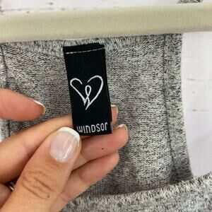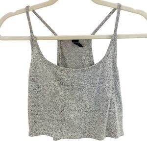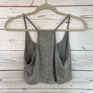 Windsor L Grey Marled Soft Cozy Knit Spaghetti Strap Racerback Crop Cami Top