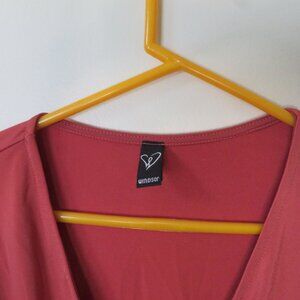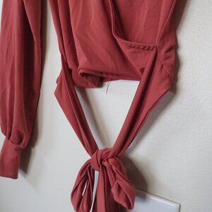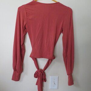 size medium windsor long sleeve top in salmon/peach color. plunging neck line with wrap tie effect. great condition!!