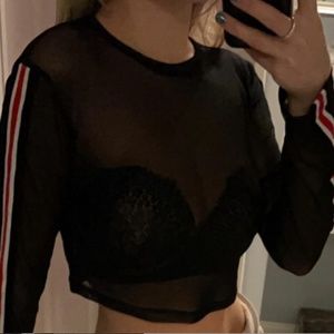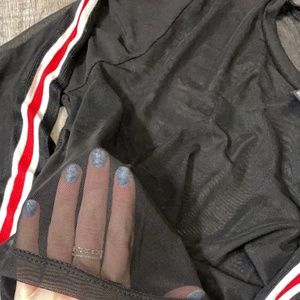 Windsor Long-Sleeve Mesh Crop Top with Striped Sleeves Size M