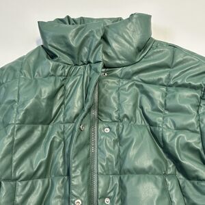 Windsor Love Tree Vegan Leather Puffer Crop Jacket Womens Size Large, Green