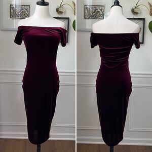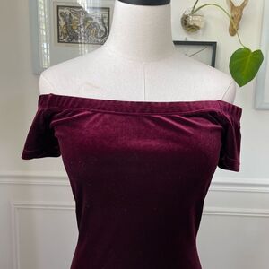 Windsor Lustrous Velvet Dress Deep Red Off Shoulder M